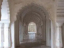 - Quila-E-Ark: In 1692, Aurangzeb ordered a palace to be built and named it the Killa Arrak. The space enclosed by the Killa Arrak or citadel covered nearly the whole ground between the Mecca and Delhi gates of the city. It had four or five gateways and a nagarkhana for the musicians. The walls were battle-mented and loop-holed, and had semi-circular towers at the angles, on which guns were once mounted. The inner portion was occupied by recesses similar to those in the city walls. To the right of the entrance was a high terrace extending the whole length of the ground enclosed.