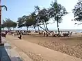 Near the northern pier is a park maintained by the Lions club, a children's park, the lighthouse with a seafarer's memorial and a marine aquarium. Further north to the Lions' Park is a dirty fishing area where once was located a French loge with factories and French settlements. Near the south pier is a place called 'Horse's Jumping Point' where horses brought from Gujarat and Arabia were made to jump into the water, swim and would gallop along the shore and be displayed for sale. The beach offers a pleasant view at times of fishermen entering the sea with their tiny boats, fighting the waves and returning with their catch.