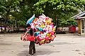 vallyaangadi is not a typical 'place of interest' to visit. The noise, rush and heat of this narrow lane would test any visitor's mettle. Nevertheless, not many streets can boast a 600-year-old history[2] and still be functioning as one of the main commercial centre of a city. In spite of creeping signs of modernity over hundreds of years, this crowded part of the city offers the best chance to visualize daily life at a commercial hub in medieval Calicut. Muslim, Jain and Hindu seths, Gujarathi and Marwari moneylenders and Tamil and Andhra Chettis can be seen busy with their businesses, as they did for centuries. Merchants and accountants still use a unique system of finger-code language as noted by Ma Huang of Zheng He's fleet in 1403. The legend has it that the first secretary of the Zamorin, Mangat Achan, after a long penance had the goddess of wealth Lakshmi appear before him. He then made her promise to wait until he returned but went home and committed suicide. Unable to break her promise, it is said, Lakshmi stayed permanently in Veliyangadi.