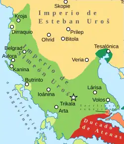 - ^ Soulis, George Christos (1984). The Serbs and Byzantium During the Reign of Tsar Stephen Dušan (1331-1355) and His Successors. Dumbarton Oaks Library and Collection. p. 45