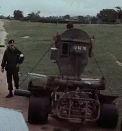 - Browning M1919A4 .30 Cal medium machine gun: standard platoon-level weapon in infantry formations; twin Browning Mk 2 models, re-chambered in the British .303 cartridge were mounted on Rhodesian Air Force Alouette III helicopter gunships (nicknamed "G-Cars" and "K-Cars"), as well as modified variants fitted with FN MAG bipods, pistol grips and stocks for ground use. Also found pintle-mounted on Land Rover, Mazda and Peugeot light pickups, Unimog 416 light trucks and armoured vehicles.[118][42][49][119][120][116]