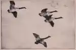| Geese in Flight, etching/print | ![]() | 25.4 in x 38.1 in (64.5 cm x 96.8 cm) | Scene: geese in flight. | ||