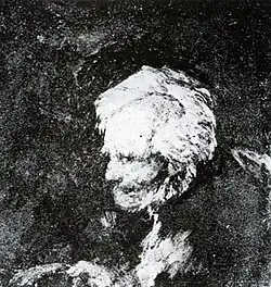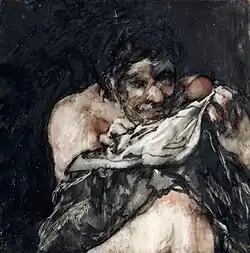 Francisco José de Goya y Lucientes (1746–1828) was a Spanish artist, now viewed as one of the leaders of the artistic movement Romanticism. He produced around 700 paintings, 280 prints, and several thousand drawings. Goya's early career as a painter in the court of Charles III is marked by portraits of the Spanish aristocracy and tapestry cartoons in a Rococo style. Continuing to produce official portraits and paintings for the courts of Charles IV and Ferdinand VII, Goya's middle period is also notable for print series that satirize the human condition and show the brutalities of war. Finally, towards the end of his life, Goya created the enigmatic Black Paintings, applying oil paint directly onto the plaster walls of his house on the outskirts of Madrid.