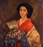 | Black Fan 黒扇 kokusen | oil on canvas | 1908–9 | Bridgestone Museum of Art | Important Cultural Property[5] | ![]() | 42.4 centimetres (16.7 in) by 63.7 centimetres (25.1 in) | Figure | [52] |