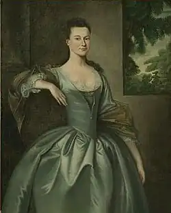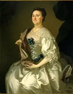 | 1755 | Portrait of Mrs. George Bethune, oil on cavas | 50 × 40 1⁄4 in. (127.0 × 102.2 cm.) | Museum of Fine Arts, Springfield | Subject: Mary Faneuil (1734–1797); daughter of Benjamin Faneuil (one of first paper manufacturers in Massachusetts); niece of Peter Faneuil (provided funds for Boston's public market and meeting house); wife of George Bethune (m. 1754, Boston); mother of George, Susan (Mrs. Edmond Dunkin), Penelope (Mrs. English), Jane (Mrs. William Hunt), and Ann (Mrs. Lovell).[6] IAP 22930027 | |