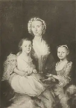 | 1755 | Portrait of Isaac Winslow and His Family, oil on canvas, one of the earliest group portraits painted in Colonial America[3] | ![]() | 54 1⁄2 × 79 1⁄4 in. (138.4 × 201.3 cm.) | Museum of Fine Arts, Boston, Massachusetts | Subjects: Isaac Winslow (1707–1777; one of Boston’s mercantile elite); his wife, Lucy Waldo (1724–1768; m. 1747); elder daughter, Lucy Winslow (1749–1770); child in mother's lap, Hannah Winslow (1755–1819). Setting: Scenery of idealized garden with swan pond behind elder daughter alludes to family’s prosperity.[4] IAP 85520007 and IAP 82110940 |
