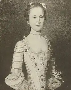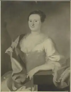 | 1755 | Portrait of Mrs. John Erving, Jr., oil | view | 49 × 38 7⁄8 in. (124.5 × 98.7 cm.) | Wadsworth Atheneum, Hartford, Connecticut | Subject: Maria Catherine Shirley (1729–1816); youngest daughter of William Shirley (1694–1771; colonial governor of Province of Massachusetts Bay, 1741–49 and 1753–56; Governor of the Bahamas in the 1760s) and Frances Barker (died 1746; Lady Frances Shirley); wife of John Erving Jr. (1728–1816).[5] IAP 80960033 |