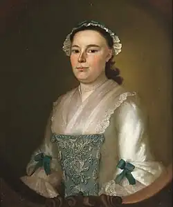 | 1756 | Portrait of Mrs. Nathaniel Cunningham (c. 1756), oil on canvas | 50 × 39 1⁄2 in. (127 × 100.3 cm.) | Colby College Museum of Art, Waterville, Maine | Subject: Sarah Kilby; wife of Nathaniel Cunningham Jr. (1725–1756; m. 1754); mother of two daughters. (probably IAP 18830150) | |