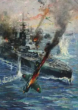 | 1939-1945 | Aircraft Attack British Battleship (originally may have been untitled), oil on board | view | 64.4 × 49.2 cm. (25.4 × 19.4 in.) | The National Archives, Kew, Richmond, UK | Artwork created for Ministry of Information during Second World War. INF 3/45 |