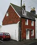 | 15 Middle Street | | Shoreham-by-Sea 50°49′58″N 0°16′33″W / 50.8327°N 0.2757°W | II | Older than its neighbours, this narrow mid-18th-century house has a red tiled front wall which is buttressed at the corner. This belonged to an adjoining building which has been demolished, revealing a painted side wall. The two-storey cottage also has attic space with a dormer window. | [114][115] |