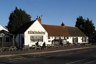 | Red Lion Inn | | Old Shoreham, Shoreham-by-Sea 50°50′24″N 0°17′09″W / 50.8401°N 0.2858°W | II | This 18th-century inn, a long building with several later extensions, faces Shoreham Tollbridge. The L-shaped plaster-covered building rises no higher than 1½ storeys. Alfred, Lord Tennyson's poem Rizpah was based on a robbery which was discovered after the criminals' conversation was overheard in the inn. | [44][106] [107] |