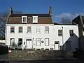 | 46–54 West Street | | Shoreham-by-Sea 50°50′02″N 0°16′39″W / 50.8338°N 0.2774°W | II | Row of five Georgian cottages with coursed cobblestone and red brick quoins band and dressings and slate roofs. Likely to have been built between 1825 – 1832 on land that was previously an orchard (unlikely to have been built in 1775 as stated on a sign, as they do not appear on maps from that period). The old hemp store building at the corner of North Street adjoining the cottages (used by rope makers) pre-dates the cottages. The cottages were built on land belonging to William Ratcliff (glazier & painter) and remained in the Ratcliff family until 1931 generation after generation – when they were used as rental properties for workers in local trades – including mariners, rope makers, laundresses, and coal carters. The Ratcliff family were owners of various residential and commercial properties in New Shoreham and this contributed to their income and modest wealth. Although the cottages have had diamond lattice casement windows since the point when they were listed, they would have originally had sash windows. Up to the mid 20thC the cottages shared one flushing privy and it is likely the garden area was a communal space. A 1968 newspaper clipping reveals that the three cottages in the row that were auctioned in 1931 (numbers 50, 52 and 54) were modernised at that time, the fate of the remaining two cottages (numbers 46 and 48) was different – as they were 'rescued' in 1968 by the Historic Shoreham Trust. In September 1972 the cottage row was awarded a Grade II listing by English Heritage, and West Street has been included in the Shoreham Conservation Area since 2007–8. This row of cottages would have had a collective name, as per other local rows of cottages such as May Cottages and Trinidad Row in the same street. Possible names for this particular row of cottages are cited as Sugden Place or Jamaica Terrace – although further investigation into the name is being carried out and this cannot yet be confirmed. | [118][132] |