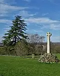 | Alderwasley War Memorial 53°04′25″N 1°30′51″W / 53.07373°N 1.51420°W | ![]() | After 1920 | The war memorial stands on an isolated site in Alderwasley Park. It is in the form of a granite Celtic cross with a tapering square shaft, set in a cairn of sandstone boulders with a concrete core. On the cross is a raised knotwork design, and on the foot of the shaft is an inscribed granite plaque. There are other granite plaques containing the names of those lost in the two World Wars.[19] |