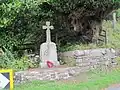 | Nenthall War memorial 54°48′23″N 2°22′32″W / 54.80630°N 2.37554°W | ![]() | 1922 | The war memorial is in an enclosure at a road junction. It is in grey granite, and consists of a Latin cross with Celtic knotwork carved on the cross and the front of the shaft. The cross is on a rough-hewn plinth on a rusticated base. Carved on the plinth is an inscription and sheathed sword through a wreath in relief.[93] | II |