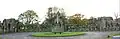 | Former Queen's Hotel and railings 53°33′16″N 1°28′43″W / 53.55446°N 1.47869°W | ![]() | 1872 | The former hotel is on a corner site, and is in stone, with sill bands, a dentilled cornice, and a panelled and balustraded parapet. There are three storeys and attics, three bays on Eldon Street, seven bays and an additional four bays on Regent Street, and three rounded bays on the corner. The original bays on Regent Street are symmetrical, the middle bay and the corner bays with pilasters and acanthus capitals. The middle bay contains a round-arched portal with a dentilled cornice on consoles, and a keystone with a carved head of Queen Victoria. The windows are sashes, those in the ground floor have round-arched heads with keystones and pointed hood moulds. In the middle floor, the central window has a segmental pediment and a balustrade with urns. The other windows have decorated heads, two with cornices on lions-head brackets. The top floor windows have architraves and decorative keystones, the central window with a round-arched tympanum containing two cornucopia. In front are decorative railings.[7][40] | II |