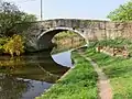 | Prescott Bridge 53°37′03″N 2°49′01″W / 53.61756°N 2.81693°W | ![]() | c. 1781 | The bridge carries Meadow Lane over the Rufford Branch of the Leeds and Liverpool Canal. It is in sandstone, partly replaced in concrete, and consists of a single semi-elliptical arch with a humped cobbled deck. The bridge has voussoirs and terminal piers.[20] | II |