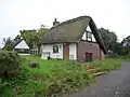 | 38 Wellington Road 52°45′25″N 2°23′12″W / 52.75688°N 2.38662°W | ![]() | Late 17th to early 18th century (probable) | A small brick cottage with a thatched roof. It has one storey and an attic, one bay, a lean-to on the right, and a large chimney stack protruding on the left. In the ground floor is a doorway and a casement window, and above is an eyebrow dormer.[12] | II |
