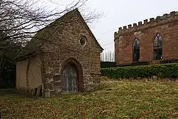 | Talbot Chapel 52°45′47″N 2°24′27″W / 52.76295°N 2.40753°W | ![]() | Late 13th century | This is the surviving chancel of a church, the rest of it having been demolished, and the chancel then used as a mortuary chapel. It is in sandstone with a tiled roof. At the east end are five lancet windows under an arch, at the west end is a double-chamfered arched doorway, there are two lancets in the north wall, and a blocked arch on the south side. Inside is a large monument to members of the Talbot family.[2][3] | II* |