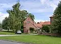 | Pigeoncote and farm buildings, Pond Farm 53°15′01″N 0°53′18″W / 53.25014°N 0.88831°W | ![]() | Late 18th century | The farm buildings are in red brick, some on a plinth, and have pantile roofs. The stable block, with a pigeoncote above, has dogtooth eaves, two storeys and three bays. In the centre is a stable door under a segmental arch, and above are entrances for pigeons, with wooden platforms. To the left and right are other farm buildings, including stables, cowhouses and a barn.[14] | II |