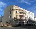 | Belle Vue Hotel | Eastbourne 50°46′04″N 0°17′32″E / 50.7677°N 0.2923°E | II | This sea-facing block opposite the pier was listed as Belle Vue Hotel, Miramar Hotel and Queen's Mansions; it is now the Pier Hotel. The four-storey stuccoed Regency-style building of 1880 has a 12-window façade in a 3–6–3 formation. Small balconies, a cornice and a parapet are also apparent. The stucco at ground-floor level is rusticated. | [2][72] [73] | |