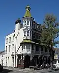 | King's Arms | Roselands 50°46′30″N 0°17′46″E / 50.7751°N 0.2962°E | II | The architect of this pub, built in about 1900, is believed to be A. Dixon. The building is on a corner site and has a prominent octagonal corner tower topped with a copper roof and cupola. A timber verandah with a heavily bracketed copper canopy spans the main façade at first-floor level. There is elaborate decoration around the entrance, including marble, tiles, engraved glass and inscribed panels. Intricate plasterwork also survives inside. | [109] | |