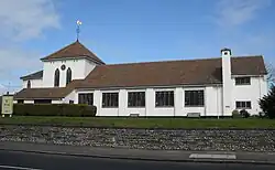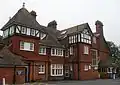 Eastbourne's continued suburban growth in the early 20th century led to the construction of several more buildings which have been awarded listed status. During redevelopment in South Street, a "Norman Shavian-style" terrace of elaborately gabled shop units replaced some older buildings,[21] and Hastings architect Henry Ward designed the "Free Gothic" red-brick Free Church in 1903.[22][23] Britain's earliest municipally operated bus service was inaugurated in the same year, and a "decorative", prominently sited bus shelter from that era survives.[24] The Caffyn's car showroom and garage opposite Our Lady of Ransom Church also served as that locally founded company's headquarters. The "impressive" and "ebullient" brick building combines several architectural styles.[25] The church itself was opened two years earlier, although prominent ecclesiastical architect Frederick Walters' Decorated Gothic Revival design dated from the previous decade.[26]