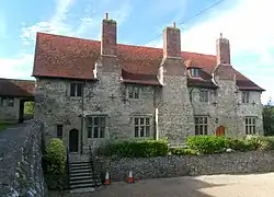 As well as St Mary the Virgin's Church, the Lamb Inn, Bourne's old manor house and several cottages, some former agricultural buildings and farmhouses—mostly now converted for other uses—survive from the pre-resort era. Flint, cobblestones and red brick are the characteristic building materials of these simple Vernacular structures. Examples include Pillory Barn,[10] Upperton Farmhouse,[11] and the farmhouse,[12] barn[13] and dovecote[14] of Motcombe Farm. A large group of similar buildings of the 18th and 19th centuries are found in Willingdon, a Downland village which has become part of the Eastbourne conurbation and whose southern section is part of the borough. Several flint-built cottages surround the village post office and stretch down Wish Hill. Nearby, Chalk Farm and its barn have been converted into a hotel and restaurant.[15][16]