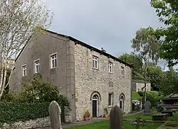 | Congregational Church 54°04′21″N 1°59′46″W / 54.07251°N 1.99614°W | ![]() | 1811 | The church is in gritstone, partly rendered, with stone gutter brackets, and a stone slate roof with stone gable copings and kneelers. There are two storeys, and fronts of three bays. On the entrance front are incised angle pilasters, and two round-arches doorways each with an architrave, tie-stone jambs, a fanlight with radial glazing, a keystone and a hood mould. Between the doorways is a rectangular window, above which is a plaque under sun-ray moulding containing an inscription and the date. All the windows date from the 20th century.[6][26] | II |