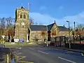 | The Poplars 53°03′47″N 1°21′02″W / 53.06301°N 1.35054°W | ![]() | c. 1850 | A vicarage, later a private house, it is in stone, with a coved eaves band, and a tile roof with coped gables and gableted kneelers. There is a single storey with attics and three bays. In the centre is a projecting gabled porch with a four-centred arched doorway and a hood mould. The outer bays contain three-light mullioned windows, the upper windows in gabled half-dormers.[5][8] |