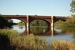 | Kelham Bridge 53°05′33″N 0°50′33″W / 53.09249°N 0.84260°W | ![]() | 1857 | The bridge carries the A617 road over the River Trent. It is in brick with stone dressings, and consists of five segmental arches of differing sizes, on four canted piers. The bridge has chamfered stone soffits and hood moulds, a chamfered string course, corbelled pedestrian refuges, and plain stone coping.[11][20] | II |