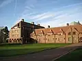 | Former Monastic buildings, Kelham Hall 53°05′30″N 0°50′46″W / 53.09172°N 0.84598°W | ![]() | 1927–29 | The monastic buildings form three ranges around a quadrangle, completed by a chapel to the north, and have since been converted for other uses. They are in brick and concrete, with tile roofs. The south range has two storeys and seven bays, and the main west range has three storeys and attics, with ten bays, and contains a round-arched entrance. Most of the windows are cross-casements, and there are dormers. The central space of the chapel has a high brick-lined dome, and most of its openings have round-arched heads.[11][23] | II |