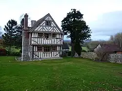 | The Day House 52°34′48″N 2°45′47″W / 52.57990°N 2.76309°W | — | Mid to late 17th century | A farmhouse that was altered and extended in the 19th and 20th centuries, and divided into three dwellings. It is timber framed with red brick infill, partly rebuilt in brick, and extended in sandstone. There is one storey and attics, four bays, and an extension. The doorway has a segmental head, the windows are casements, and there are four gabled dormers.[11] | II |