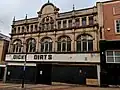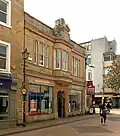| 11 Leeming Street 53°08′42″N 1°11′44″W / 53.14492°N 1.19569°W | ![]() | c. 1900 | A shop faced with faience, it has three storeys and five bays. On the ground floor are modern shop fronts under a continuous fascia. Between the bays on the middle floor are Ionic columns, the windows have three lights under a moulded elliptical arch, and impost bands. Above them is a cornice and a frieze with roundels. The middle bay of the top floor is flanked by Ionic columns on pedestals, above it is a shouldered dentilled semicircular gable with volutes and a finial, and it contains an elliptical-arched three-light window with mullions. Each outer bay contains a three-light windows, and above is a pierced coped balustrade with pedestals and finials.[20][98] | II |