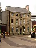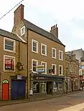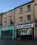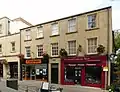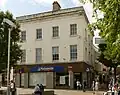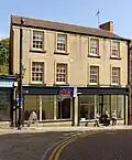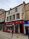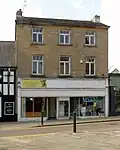 | 15 Church Street, Mansfield 53°08′39″N 1°11′41″W / 53.14409°N 1.19475°W | ![]() | c. 1800 | Two houses, later a shop, in stone with an eaves band and a tile roof. There are three storeys and four bays. On the ground floor is a 19th-century double shop front with pilasters, a full-width fascia on brackets, and a recessed entrance flanked by shop windows. The upper floors contain sash windows with projecting surrounds.[49] | II |