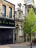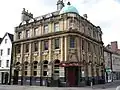 | Former bank at junction with Queen's Walk 53°08′37″N 1°11′48″W / 53.14352°N 1.19671°W | ![]() | c. 1900 | The bank on a corner site, later used for other purposes, is in stone on a granite plinth, with a sill band, cornices, a ramped coped parapet with volutes, and a slate mansard roof. There are two storeys and attics, fronts of two bays, and an angled bay on the corner. The corner bay contains a doorway with an elliptical head, panelled pilasters, and a triple-scroll keystone, above which is a round window. The ground floor contains rusticated quoins, between which are elliptical-headed windows with keystones linked by a curved band. On the upper floor are cross-casement windows with moulded rusticated surrounds and keystones, between which are paired fluted Ionic pilasters. In the attic are five dormers with Ionic pilasters and open pediments containing cartouches.[99] | II |
