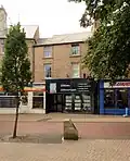 | 36 Church Street, Mansfield 53°08′37″N 1°11′37″W / 53.14359°N 1.19374°W | ![]() | c. 1800 | A house, later an office, in stone with an eaves band and a concrete slab roof. There are three storeys and two bays. On the ground floor is a 19th-century shop front with pilasters, a small cornice and a doorway to the right, and to its left is a doorway with a stone surround. The upper floors contain sash windows with projecting surrounds.[51] | II |