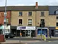 | 32 and 32B Church Street, Mansfield 53°08′37″N 1°11′38″W / 53.14367°N 1.19396°W | ![]() | c. 1800 | A house, later shops, in brick with a stone front, an eaves band and a concrete slab roof. There are three storeys and three bays. On the ground floor is a late 19th-century shop front with pilasters, a fascia on ornamental brackets, and a splayed central recess. The upper floors contain casement windows with transoms.[50] | II |