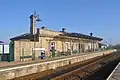 | Mansfield railway station 53°08′32″N 1°11′55″W / 53.14219°N 1.19872°W | ![]() | 1872–75 | The railway station was built by the Midland Railway, and designed by J. H. Sanders in Italianate style. It is in stone on a plinth, with a string course, rusticated quoins, moulded eaves and hipped slate roofs. There is a single storey and eleven bays. The central entrance is in the form of a Venetian window, and contains a doorway with a moulded surround, a fanlight, and a scroll keystone. The windows in the flanking bays are sashes with cornices on scroll brackets. The platform side has a moulded cornice and a parapet, and in the centre are three round arches with moulded heads and square piers.[36][93] | II |