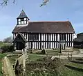 | St Peter's Church 52°44′33″N 2°59′25″W / 52.74258°N 2.99019°W | ![]() | Late 15th century (probable) | The porch was added in the 16th century, and the bellcote in about 1718, and the church was restored in 1878, and again in 1924–25. It is timber framed with rendered infill on a plinth mainly of stone but of brick at the east end. The roof is tiled with ornamental cresting. The church consists of a nave and a chancel in one unit, and a south porch. On the west gable is a bellcote with a slate broach spire. The east window is mullioned, there is a mullioned and transomed window on the south side, and the other windows are small.[2][3] | I |