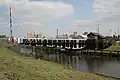 | Hayhurst Bridge and control cabin 53°15′30″N 2°30′59″W / 53.2582°N 2.5164°W | ![]() | 1899 | A swing bridge carrying the A5509 road over the Weaver Navigation. It consists of a single pivoted span with asymmetrical bowstring lattice girders. There is a pair of steel gates at each end, carried on cast iron posts. The control cabin is timber-framed and weatherboarded, with casement windows, and an ornate finial on its pointed roof.[10][41] | II |