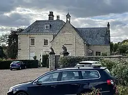 | Oswaldkirk Hall 54°12′08″N 1°03′11″W / 54.20229°N 1.05307°W | ![]() | c. 1690 | The house is in limestone on a plinth, with rusticated quoins, a floor band, a modillion cornice, and a hipped Westmorland slate roof. There are two storeys with attics, and five bays, and a service wing with one storey and an attic on the right. Steps lead up to the doorway that has an eared surround and a broken segmental pediment, and the windows are sashes in eared architraves. In the attic are three dormers with horizontally-sliding sashes. The wing has a sash window, dormers, a verandah and a bellcote.[4][5] | II* |