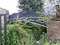 | Halfpenny Bridge 53°36′39″N 2°09′02″W / 53.61082°N 2.15067°W | ![]() | 1831 | A footbridge, originally a toll bridge, crossing the Rochdale Branch Canal, which is now dry. It consists of a level girder and a slightly segmental-arched girder, with a parapet of cast iron railings with lattice panels. At the west end are three fluted cast iron columns leading to stone steps with rusticated walls. The road bed is paved with York stone.[99] | II |