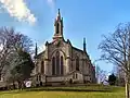 | Ukrainian Catholic Church of Saint Mary 53°37′13″N 2°09′12″W / 53.62040°N 2.15341°W | 1821 | Originally the Anglican Church of St James, later a Roman Catholic church, it is stone with a slate roof. The church consists of a nave, a small chancel with a north vestry, and a west tower flanked by porches. The tower has three stages, buttresses rising to crocketed pinnacles, clock faces, and an embattled parapet. Along the sides of the nave are buttresses, an embattled parapet, and windows in Perpendicular style.[85][86] | II | |