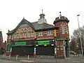 | Former Maypole public house 53°29′34″N 2°17′03″W / 53.49289°N 2.28408°W | ![]() | c. 1860 | The former public house is in brick, the ground floor faced in stone, and with a Welsh slate roof, two storeys with attics, and five bays, the outer bays gabled. On the upper floor of the left bay are triple round-arched windows, and in the attic are stepped windows and a small balcony. In the right bay is a flat oriel window. The second bay contains a gabled porch, in the upper floor are windows with polychrome round heads, above them is a stone eaves parapet, and on the roof are two dormers with hipped roofs.[93] | II |