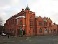 | Former Manchester Swimming Baths 53°29′09″N 2°15′08″W / 53.48595°N 2.25211°W | — | 1879–80 | The swimming baths. later used for other purposes, are in brick with terracotta dressings and a partly glazed roof. The front is expressed as two storeys, and has a central pedimented gable. The central doorway has a four-centred arch, flanking pilasters, and above is a string course, a mullioned and transomed window, and a decorative terracotta panel with pilasters rising to finials. The other windows have round-arched heads.[74][114] | II |