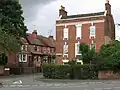 | Tutbury Institute: northwest block 52°51′29″N 1°41′03″W / 52.85797°N 1.68422°W | ![]() | c. 1900 | The hall was originally built as a Methodist chapel, and later used as a meeting hall. It is in red brick with quoins, a band, and with its gable end facing the street. The gable has dentilled eaves and contains a clock face. There are two storeys and three bays, and the windows are sashes with channelled lintels.[6][38] | II |