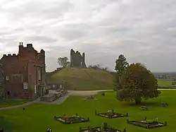 | Tutbury Castle 52°51′33″N 1°41′27″W / 52.85923°N 1.69077°W | ![]() | 12th century | The oldest surviving part of the castle, which is in ruins, is the chapel. The northeast gateway dates from the early 14th century, and the rest is from the 15th century and later. These parts include the south tower of 1442–50, the north tower from the 1450s, and the king's lodgings of 1631–35, which provides the present entrance. There is also a folly keep dating from after 1760. The remains are a scheduled monument.[4][5] | I |