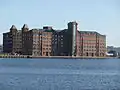 | Grain warehouse (north) 53°24′19″N 3°01′42″W / 53.40524°N 3.02835°W | ![]() | 1868 | The warehouse was designed by G. F. Lister, and has been converted into flats. It is in brick on a stone base, with stone dressings, and has six storeys, with 18 bays along the front and five along the sides. At the top is a corbelled parapet. The windows have projecting segmental lintels with keystones and imposts. On the front are loading bays, and at the north end is a turret.[24][25] | II |