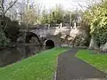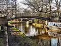 | Bridge over branches of Bridgewater Canal 53°30′02″N 2°22′52″W / 53.50053°N 2.38103°W | ![]() | c. 1760 | The bridge carries Worsley Road over branches of the Bridgewater Canal, and has since been rebuilt and enlarged. It is in stone and brick. From the east it has a semicircular brick arch, then a blind segmental arch, and two similar arches, one blind and one open. The parapet is either is stone or brick with round-topped stone coping or with iron railings.[23][25] | II |