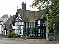 | The Old Nick 53°29′58″N 2°22′53″W / 53.49933°N 2.38133°W | ![]() | 1851 | Originally a police house, later a private house, it is timber framed with a stone-slate roof. It has a T-shaped plan, two storeys and three bays, the third bay a gabled cross-wing. On the front is a gabled porch with decorative bargeboards and a finial, and in the second bay is a gabled dormer. The windows are mullioned or mullioned and transomed. On the right return is a two-storey porch with a jettied upper floor on scroll brackets.[42][59] | II |